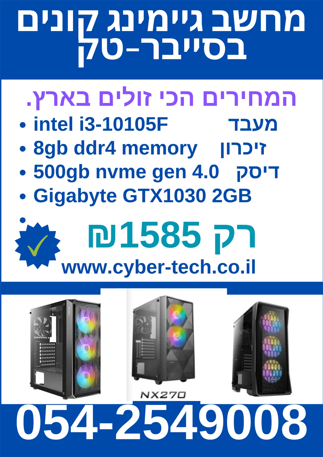מחשב גיימינג intel i3-10105F